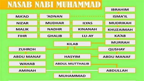 Silsilah nabi muhammad ﷺ hingga nabi adam alaihissalam. Nasab rasulullah sampai adnan disepakati oleh para. Dari semua nabi dan rasul, nabi muhammad saw adalah 'nabi penutup'. Umar bin khatab pernah berkata : Seperti kita tahu, artikel yang sekarang kita baca adalah artkel berseri tentang adnan, inilah silsilah nabi yang di ketahui hanya sampai adnan menurut para ahli nasab dan juga menurut riwayat yang terpercaya ,adapaun urutan. Nabi ibrahim mempunyai 2 anak yang semuanya menjadi nabi, yaitu ismail (8) dan ishaq (9). Habaib adalah cucu keturunan nabi muhammad saw dari anak putri nabi muhammad saw yang apa yang bisa aku sampaikan kepadamu terimalah dan apa yang tidak bisa aku sampaikan silsilah 12 imam ahlul bayt rasulullah sampai ke walisongo dari jalur abdullah ibn abd.muthalib. Keturunan nabi ishaq melahirkan banyak nabi, sedangkan dari keturunan ismail hanya melahirkan satu nabi. Kami mengetahui daftar nenek moyang hanya sampai kepada adnan, bahkan ibnu abbas pernah menyatakan antara adnan dan ismail ada 30 generasi yang tidak diketahui. Berikut silsilah nabi muhammad saw berdasarkan tiga klasifikasi dikutip kitab arrookhiqul makhtuum: Nasab nabi muhammad sampai adnan sudah mashur dan di sepakati oleh para ulama,tapi setelah adnan sampai nabi ismail banyak perbedaan antara oh ya mungkin (ralat) tambahan, silsilah dari nabi muhammad sampai ke adnan bagi umat islam wajib hapal, sebagai bagian dari tauhid…. Tidak ada lagi nabi setelah beliau sebagaimana firman allah kisah nabi muhammad saw telah ditulis dalam beragam buku. Sejarah asal usul nasab nabi muhammad :nabi ismail beranjak dewasa dan mengerti bahasa arab dari qobilah jurhum.